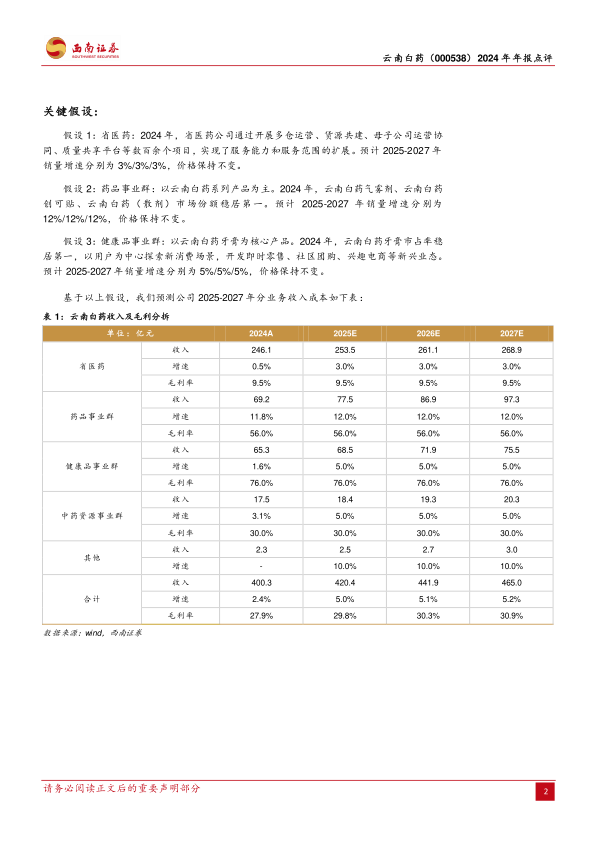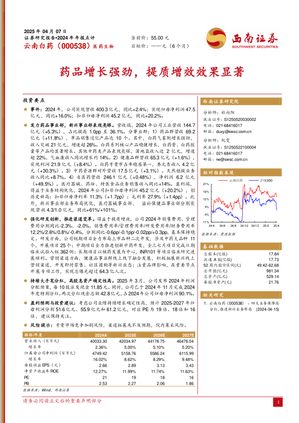 本报告对云南白药(000538)2024年年报进行了深度分析,核心观点如下: