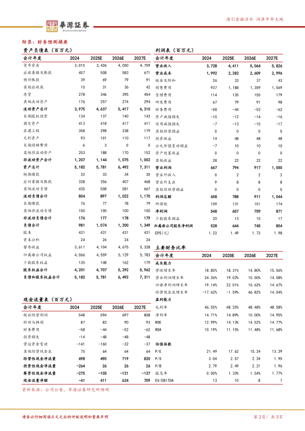 预计公司2025-2027年归母净利润分别为6.44/7.45/8.54亿元(同比增长22%/16%/15%),维持“买入”评级。