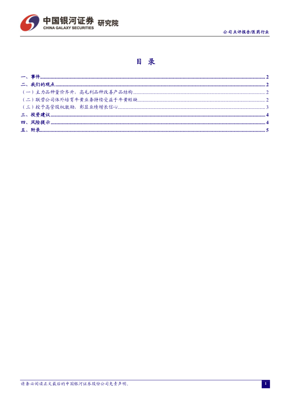 本报告分析了健民集团的主力产品量价齐升、产品结构优化以及联营公司体外培育牛黄业务的巨大潜力,并结合股权激励计划,认为公司未来发展前景良好,给予“推荐”评级。同时,报告也提示了相关风险,为投资者提供了全面的参考信息。