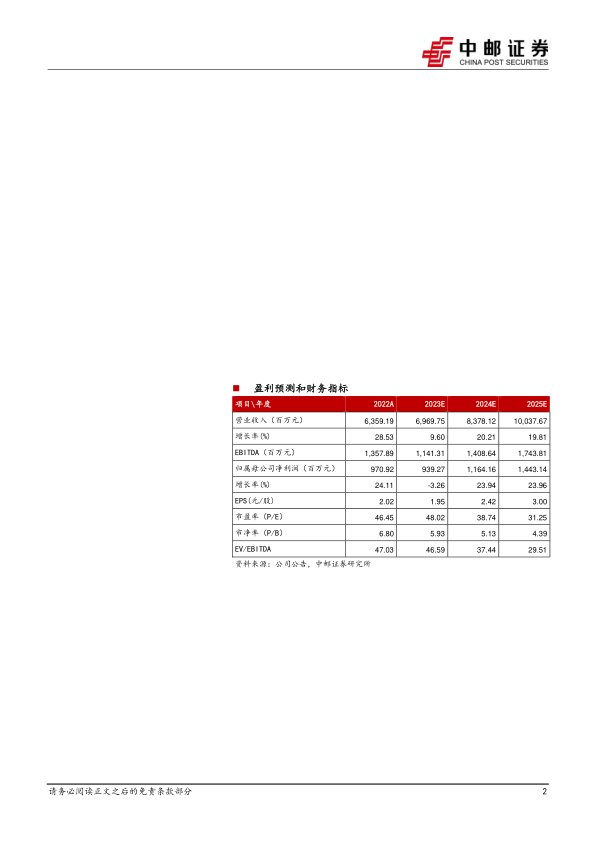 盈利预测及投资建议: 我们考虑到公司处于调整期,下调公司盈利预测,预计 23-24 年公司归母净利润分别为 9.4 亿元/11.6 亿元,对应 PE 分别为 48 倍、 39 倍。公司具备扎实研发实力,多业务协同发展,看好后续表现,维持“买入”评级。