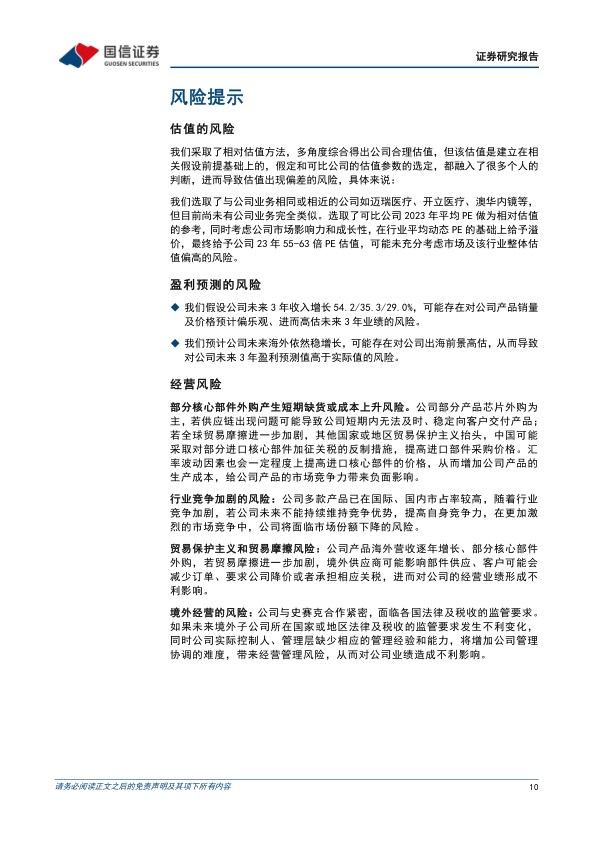 风险提示:汇率波动的风险;研发进度不及预期的风险;外购部件受国际贸易摩擦供应不及预期的风险;海外业务经营的风险。