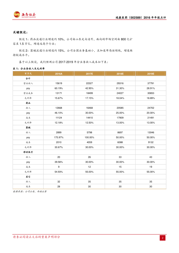 本报告对瑞康医药(002589)2016年年报进行了深度分析,核心观点如下:
