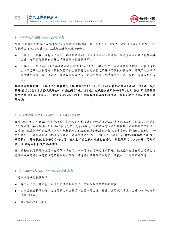 检测类业务稳定增长,血制品高速增长,期待未来微流控放量