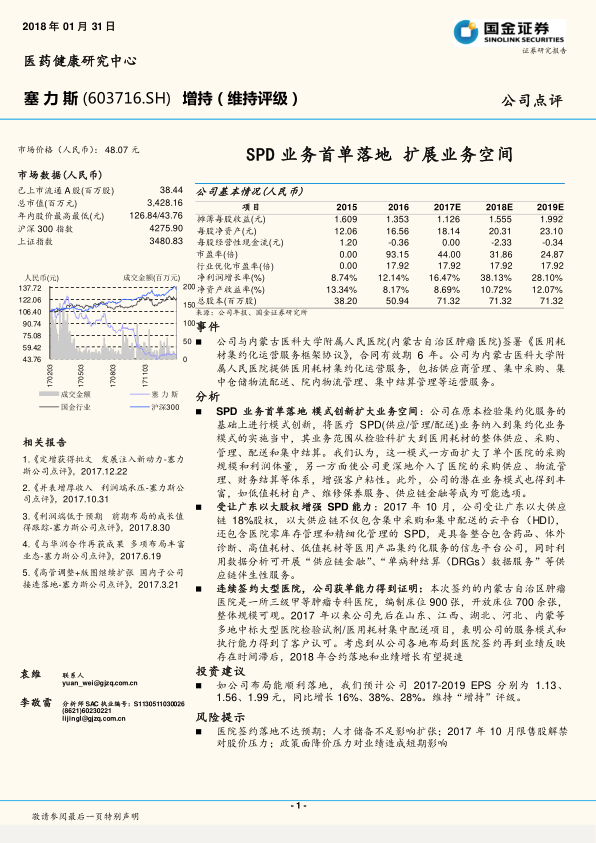 本报告的核心观点是塞力斯SPD(供应/管理/配送)业务首单落地,标志着公司在集约化服务模式上的创新,并扩展了业务空间。