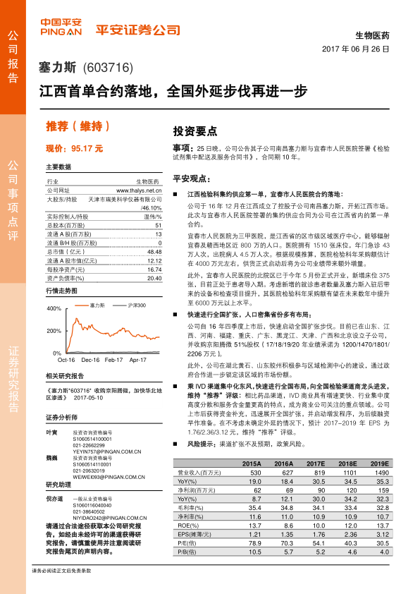本报告总结了塞力斯在江西省获得首单集约供应合同,以及公司在全国范围内快速扩张的战略。通过分析宜春市人民医院的合约情况和公司的全国布局,认为塞力斯有望受益于IVD渠道集中化的趋势,成为全国检验渠道商的龙头企业。