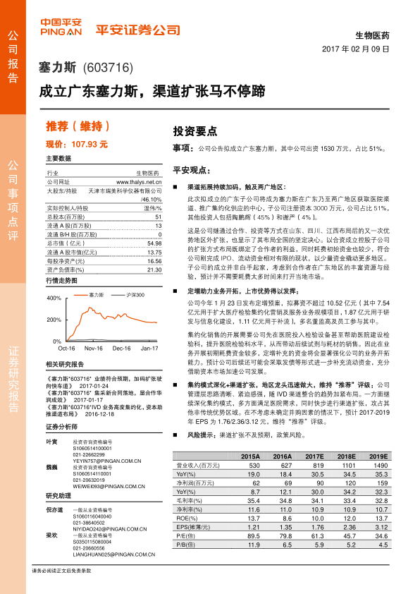 本报告的核心观点是塞力斯公司通过成立广东塞力斯子公司,持续加码渠道拓展,旨在触及两广地区市场。公司通过合资成立控股子公司的方式,绑定合作者利益,以较少的资金撬动更多地区市场,符合公司刚完成IPO、流动资金相对有限的现状。