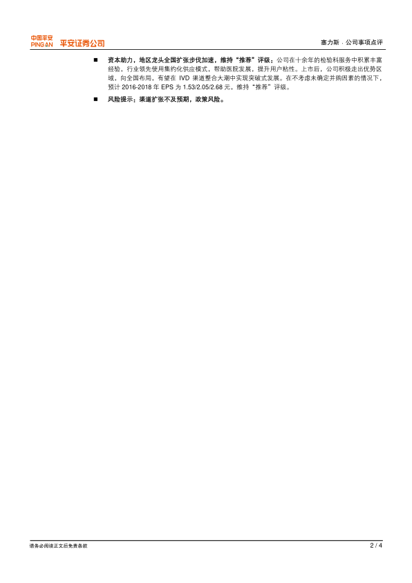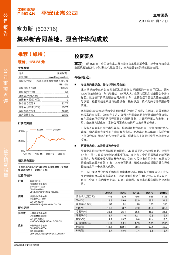 本报告分析了塞力斯中标青岛市妇儿童医院集采项目,以及启动再融资的事件。报告认为,公司与华润山东的合作成效显现,有望在山东市场获得更多项目。同时,公司启动再融资,旨在抓住IVD渠道整合的机遇,加速渠道整合步伐,实现全国扩张。维持“推荐”评级,但需注意渠道扩张不及预期和政策风险。