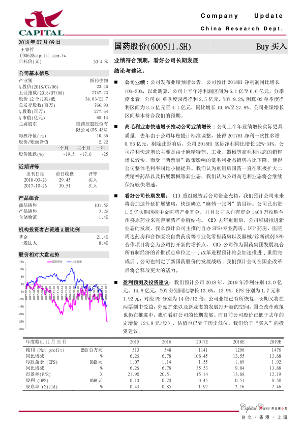 本报告分析了国药股份2017年的业绩表现,指出公司业绩符合预期,阳光采购政策的影响已经消除。同时,报告强调了公司在外延扩张、新业态发展和国企改革方面的长期发展潜力,并给出了盈利预测和投资建议,维持“买入”评级。总体而言,国药股份的业绩稳健增长,未来发展潜力巨大,值得投资者关注。
