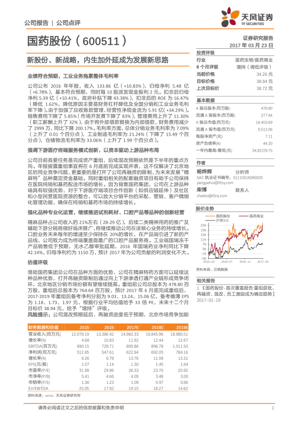 本报告分析了国药股份2016年的业绩表现,并对其未来的发展战略进行了展望。公司业绩符合预期,通过资产重组和战略转型,有望在医药商业领域取得更大的发展。