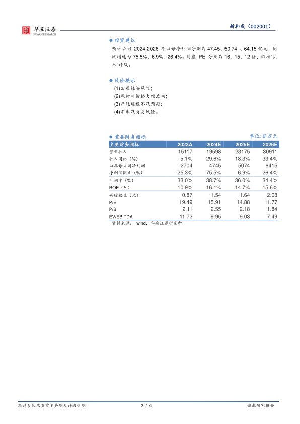 报告同时提示了潜在风险,包括宏观经济风险、原材料价格大幅波动风险、产能建设不及预期风险以及汇率及贸易风险,这些因素可能对公司的未来业绩产生影响。