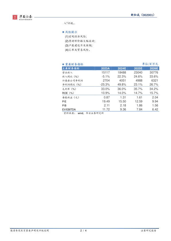 (2)原材料价格大幅波动;(3)产能建设不及预期;(4)汇率及贸易风险。
