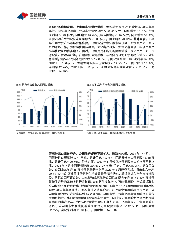 2024年半年报点评:营养品量价齐升,香精香料、新材料稳健发展