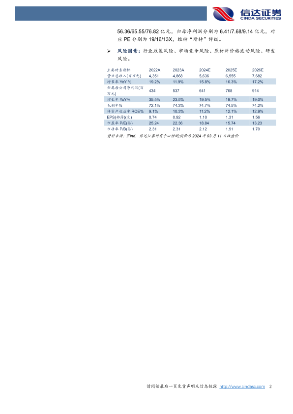 风险因素:行业政策风险、市场竞争风险、原材料价格波动风险、研发风险。