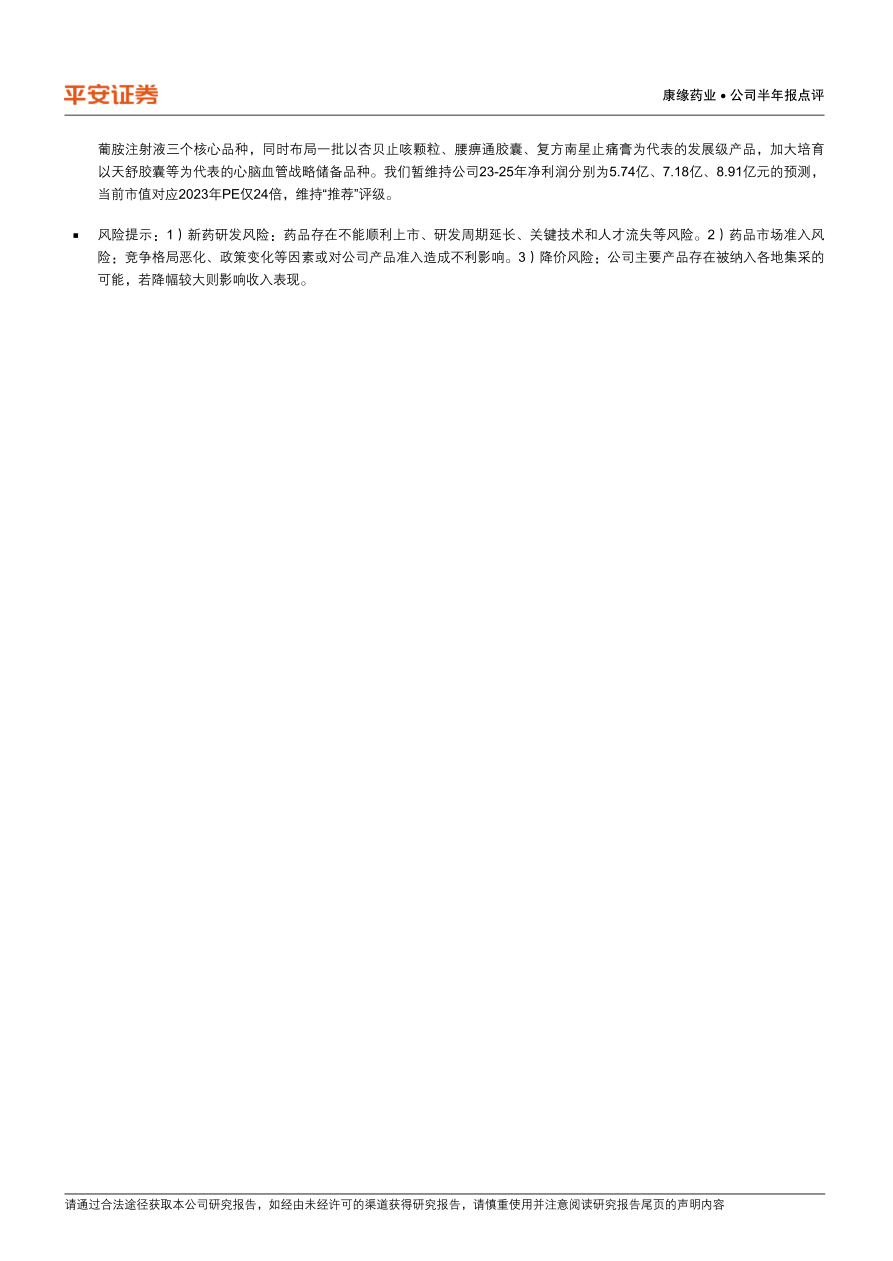 公司是国内中药创新药龙头,看好长期发展。公司持续推进新产品开发,23上半年栀黄贴膏获批临床,新申报生产品种2个,3期临床研究品质2个。同时有序开展散寒化湿颗粒、金振口服液等已上市品种的循证证据研究。同时公司坚持打造金振口服液、热毒宁注射液、银杏二萜内酯葡胺注射液三个核心品种,同时布局一批以杏贝止咳颗粒、腰痹通胶囊、复方南星止痛膏为代表的发展级产品,加大培育以天舒胶囊等为代表的心脑血管战略储备品种。我们暂维持公司23-25年净利润分别为5.74亿、7.18亿、8.91亿元的预测,当前市值对应2023年PE仅24倍,维持“推荐”评级。