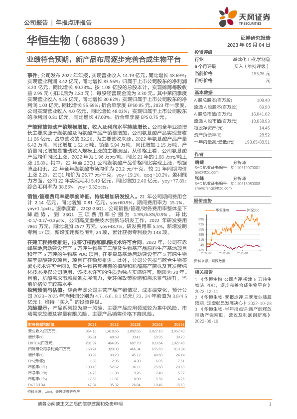 华恒生物(688639)