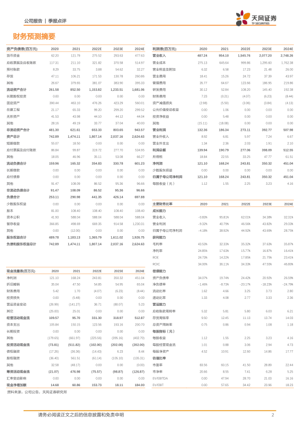 风险提示:产品系列较为单一风险、主要产品应用领域较为集中风险、市场需求放缓及容量有限风险、主要产品销售价格下降风险