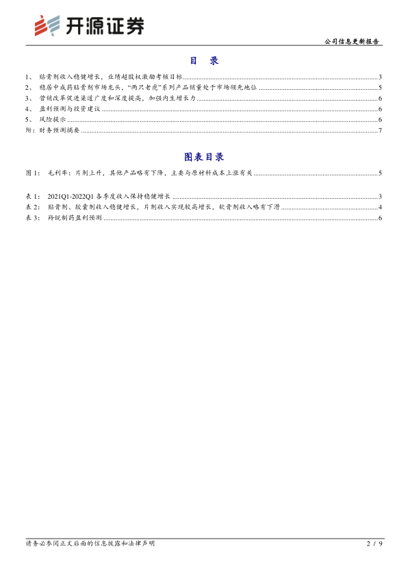 稳居中成药贴膏剂市场龙头,“两只老虎”系列产品销量处于市场领先地位据米内网统计, 2021 年我国城市实体药店中成药贴膏剂产品 TOP20 市场份额合计超过 80%,公司产品通络祛痛膏、壮骨麝香止痛膏、麝香壮骨膏等 6 个产品均名列销售额 TOP20,成为上榜产品数量最多的企业。据中康资讯 CHIS 开思系统 2020 年零售终端数据统计,公司“两只老虎”系列产品(主要包括壮骨麝香止痛膏、伤湿止痛膏、关节止痛膏、麝香壮骨膏等)销量处于市场领先地位。