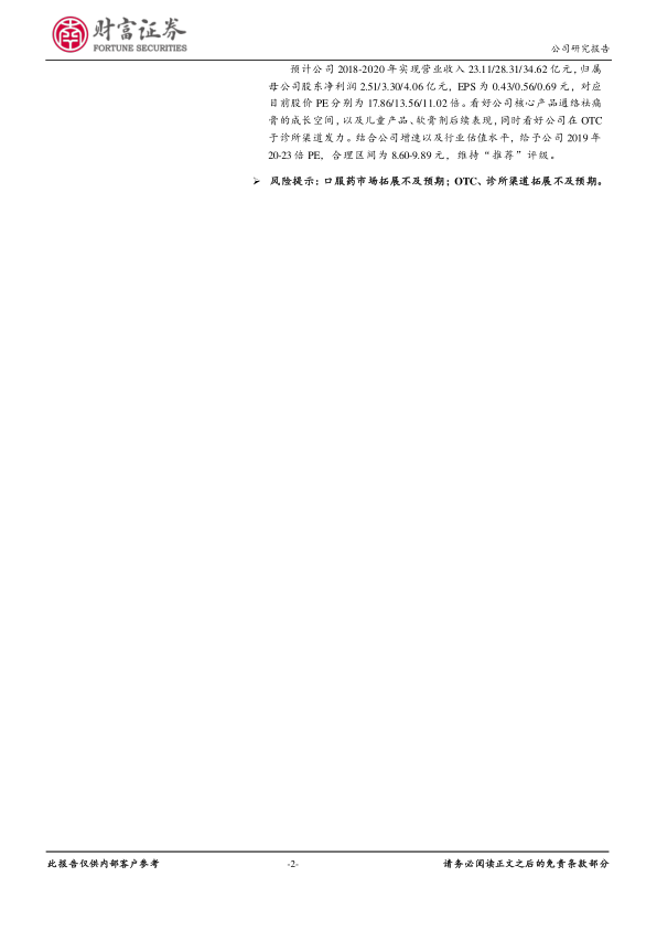 • 投资建议: 维持“推荐”评级,看好公司未来在OTC和诊所渠道的发展潜力,但需关注口服药市场拓展和渠道拓展的风险。