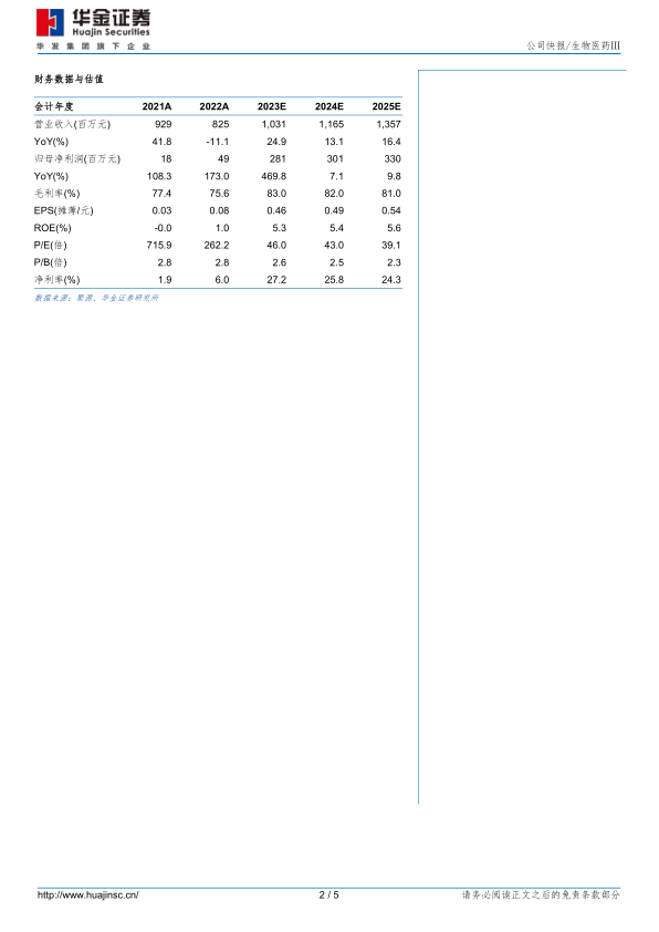 投资建议:公司自免领域深度布局,在研管线逐步进入收获期,成长动力充足。我们上调原有盈利预测,预计公司2023-2025年归母净利润2.81/3.01/3.30亿元(前值1.25/1.40/1.82亿元),增速470%/7%/10%。对应PE为46/43/39倍,维持“增持-A”建议。