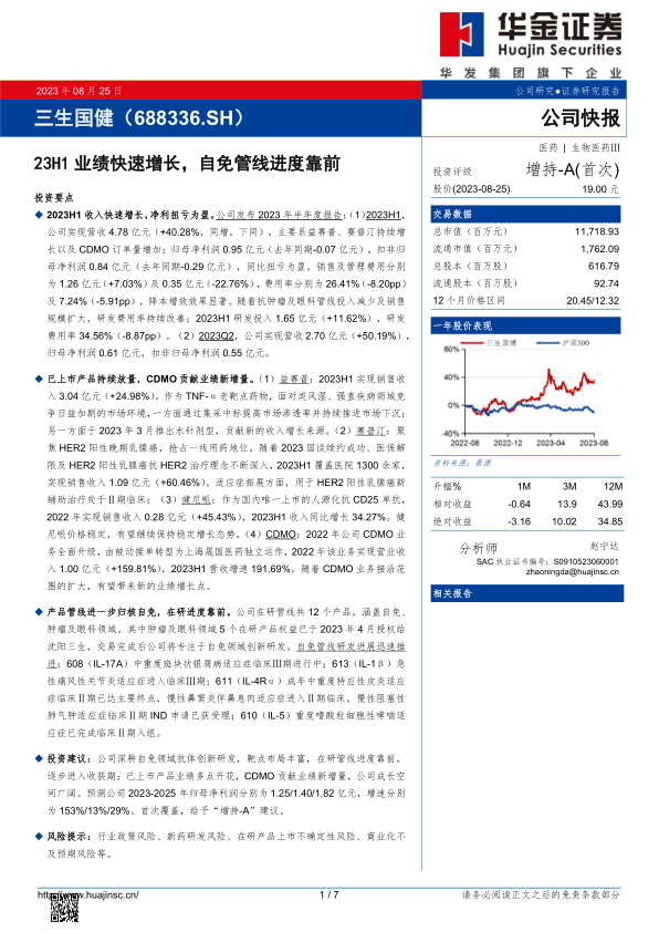 23H1业绩快速增长,自免管线进度靠前