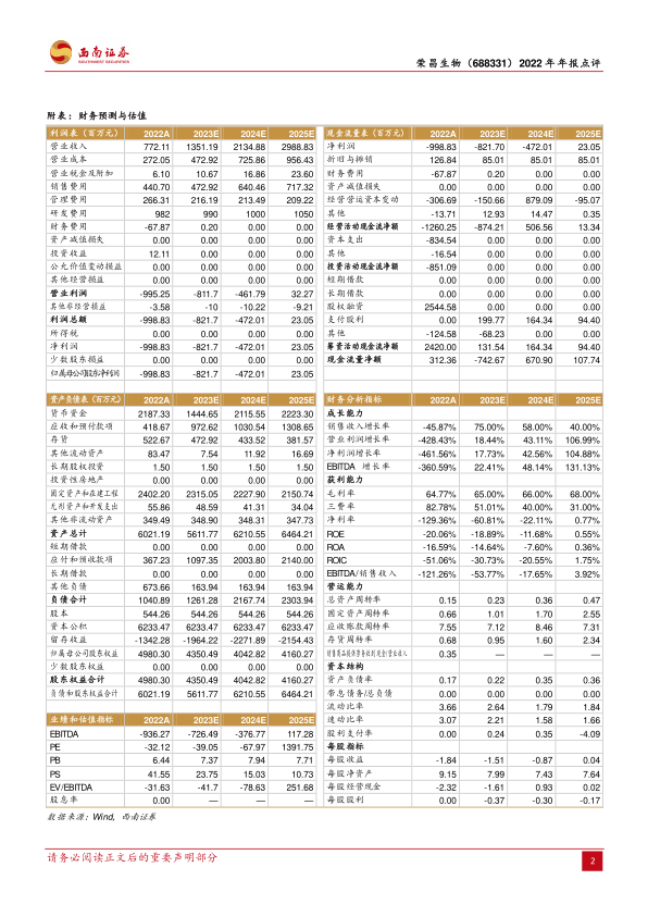 本报告对荣昌生物(688331)2022年年报进行了点评,核心观点如下: