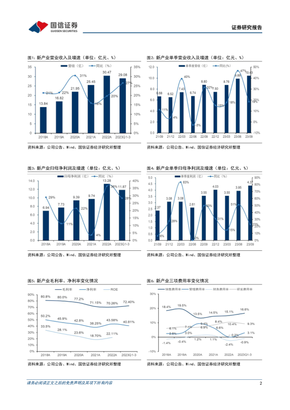 2023年前三季度,新产业公司实现营业收入29.08亿元,同比增长26.6%;归母净利润11.87亿元,同比增长28.4%;扣非归母净利润11.02亿元,同比增长29.2%。其中,第三季度单季表现亮眼,实现营收10.43亿元,同比增长18.6%;归母净利润4.37亿元,同比增长23.0%;扣非归母净利润4.15亿元,同比增长25.9%。