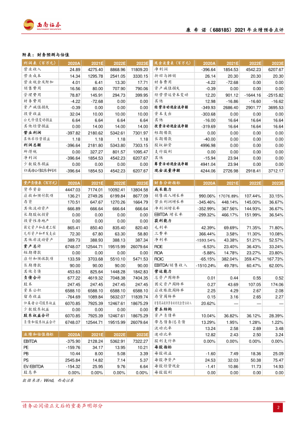 本报告对康希诺(688185)2021年业绩预告进行了点评,核心观点如下: