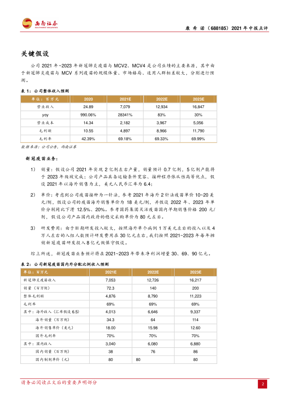本报告对康希诺(688185)2021年中报进行了深度分析,核心观点如下: