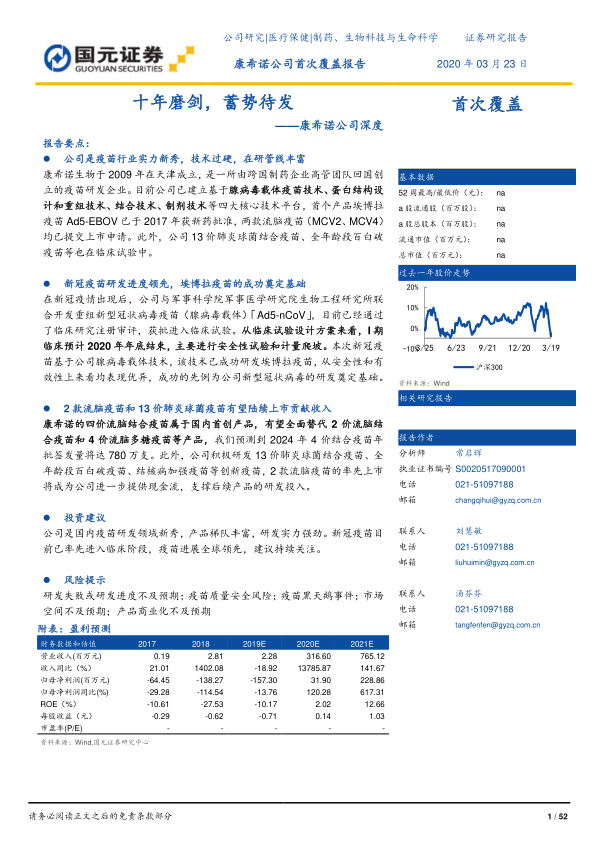 康希诺生物于2009年在天津成立,由海归高管团队创立,专注于高质量人用疫苗的研发、生产和商业化。公司发展历程扎实,首个产品埃博拉疫苗Ad5-EBOV已于2017年获批上市,两款流脑疫苗(MCV2、MCV4)已提交上市申请。此外,公司在13价肺炎球菌结合疫苗、全年龄段百白破疫苗等领域也有多款产品处于临床试验阶段。康希诺的研发管线丰富,涵盖肺炎、结核病、埃博拉病毒病、脑膜炎、百白破等13个疾病领域的16个在研疫苗。公司于2019年在港股上市,并于2020年1月提交科创板上市申请,旨在广纳资金,为研发和生产提供更充足的资金支持。