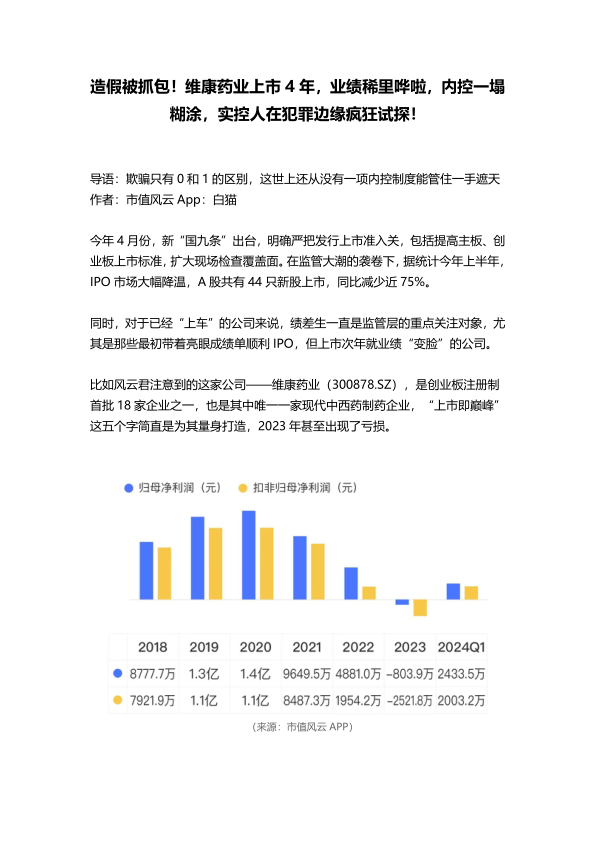 造假被抓包!维康药业上市4年,业绩稀里哗啦,内控一塌糊涂,实控人在犯罪边缘疯狂试探!