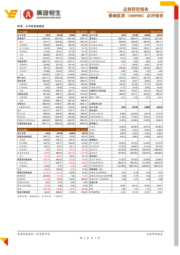 基于公司现有业务进展情况,分析师调低了景峰医药的盈利预测,测算公司2019-2021年每股收益(EPS)分别为0.16元、0.18元和0.21元,对应估值分别为26倍、23倍和19倍。尽管盈利预测下调,但分析师维持了“强烈推荐”的投资评级,表明对公司长期发展前景的信心。