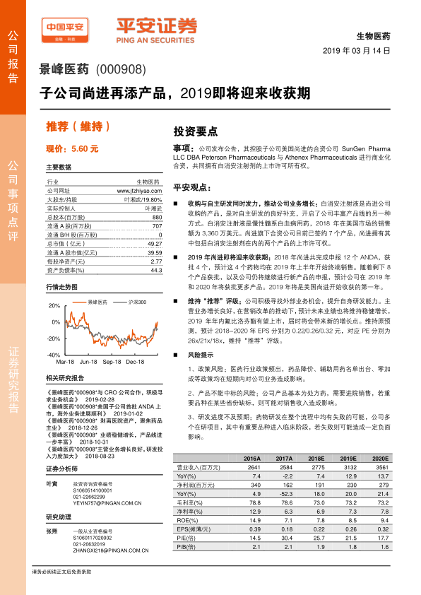 平安证券维持对景峰医药的“推荐”评级,但同时也提示了政策风险、产品中标风险以及研发进度不及预期等风险因素。投资者应综合考虑各项因素,谨慎决策。