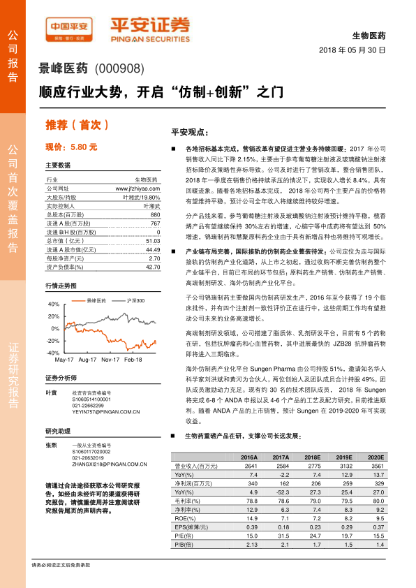 景峰医药在经历2017年业绩调整后,通过积极的营销改革和战略转型,于2018年一季度展现出收入回暖的积极迹象。公司正顺应医药行业“仿制+创新”的大趋势,致力于构建涵盖原料药、仿制药、高端制剂及生物创新药的完善产业链平台,以应对市场变化并抓住发展机遇。