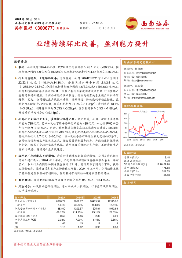 本报告对英科医疗2024年半年报进行了深度分析,核心观点如下: