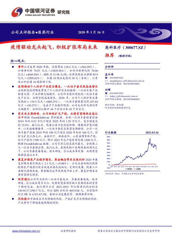 英科医疗在2020年凭借全球疫情带来的个人防护产品需求激增,实现了营收和净利润的爆发式增长,并显著提升了其在全球一次性手套市场的地位。公司通过大规模产能扩张和技术优势,有望在一次性手套需求长期持续的背景下保持高位业绩。同时,康复护理业务的稳健发展为公司提供了多元化的增长动力。尽管面临市场需求、产能扩张和产品价格波动等风险,但公司作为行业龙头,其战略布局和竞争优势使其具备持续增长的潜力,投资价值值得关注。