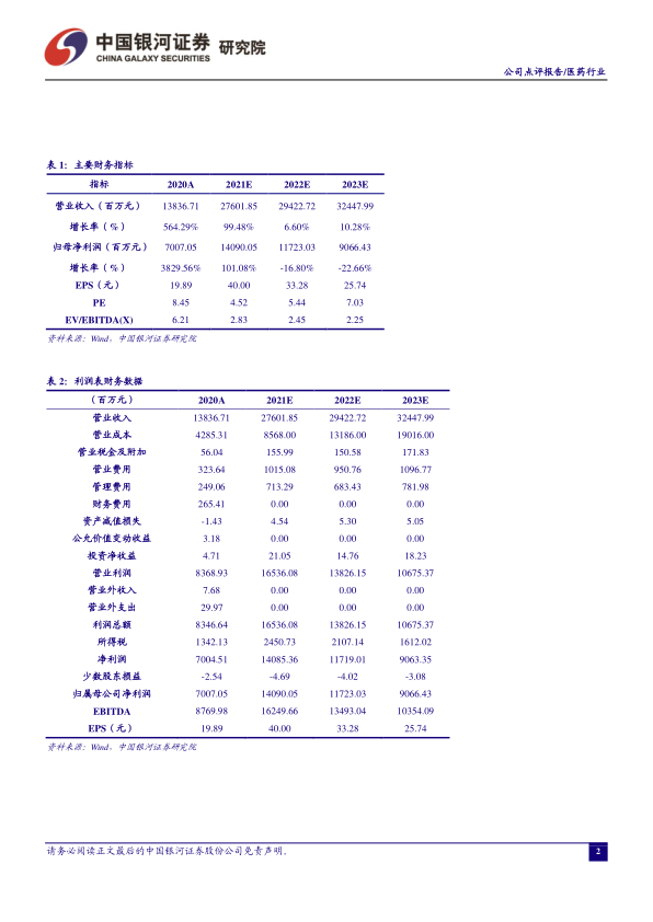 事件公司发布2020年报,实现营收138.4亿元(+564.29%),归母净利润70.07亿元(+3829.56%),扣非归母净利润70.06亿元(+4045.04%),EPS为21.98元/股;经营性现金流净额85.9亿元(+2505.62%);拟每10股派发股利30元(含税),以资本公积金每10股转增5股。
