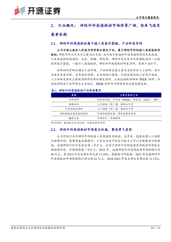 神经外科高耗领军企业,多维覆盖市场需求,首次覆盖,给予“买入”评级