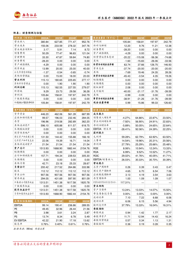 事件:公司发布]2022年年报,实现收入3.81亿元(-4.3%),实现归母净利润1.06亿元(-5.9%),实现扣非归母0.98亿元(+25.9%)。经营活动现金流净额0.64亿元(+59.5%)。同日,公司公布2023年一季度报告,实现收入1.65亿元(+64.6%),实现归母净利润0.53亿元(111.3%),实现扣非归母0.52亿元(+113.8%)。经营活动现金流净额0.03亿元(+133.5%)。22年业绩短期承压,23Q1明显回暖,符合市场预期。