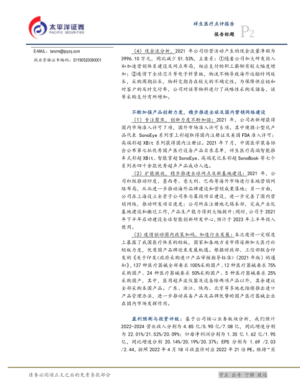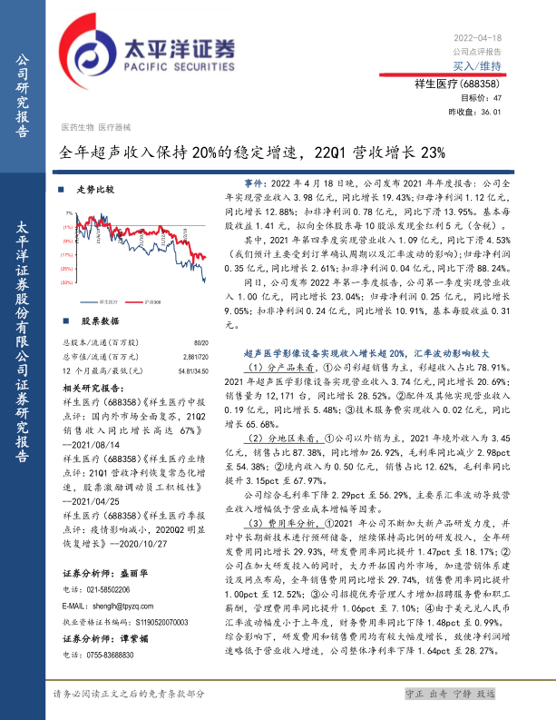 本报告对祥生医疗(688358)2021年年度报告及2022年第一季度报告进行了分析,并维持“买入”评级。