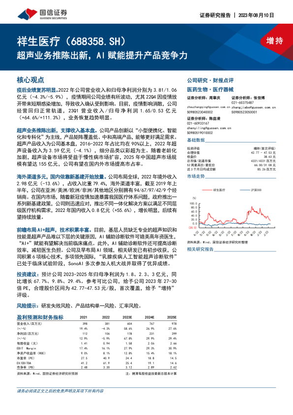 祥生医疗凭借其在超声医学影像设备领域的深厚技术积累和持续创新能力,在疫后实现了强劲的业绩复苏。公司通过“小型便携化、智能化和专科化”的产品策略,巩固了超声业务的基本盘,并积极把握全球慢性病市场扩容和国内医疗新基建带来的双重增长机遇。同时,公司前瞻性布局“AI+超声”技术,有望解决行业痛点并提升产品竞争力。尽管面临多重风险,但其稳健的增长预期、全球化的市场布局以及在AI领域的领先优势,支撑了其未来业绩的持续增长潜力,因此获得“增持”评级。