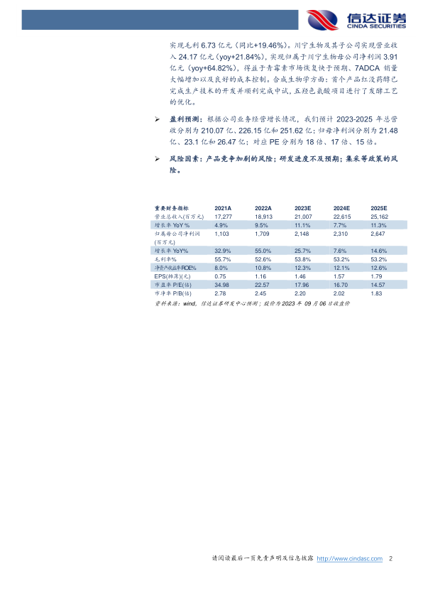 盈利预测:根据公司业务经营增长情况,我们预计2023-2025年总营收分别为210.07亿、226.15亿和251.62亿;归母净利润分别为21.48亿、23.1亿和26.47亿;对应PE分别为18倍、17倍、15倍。
