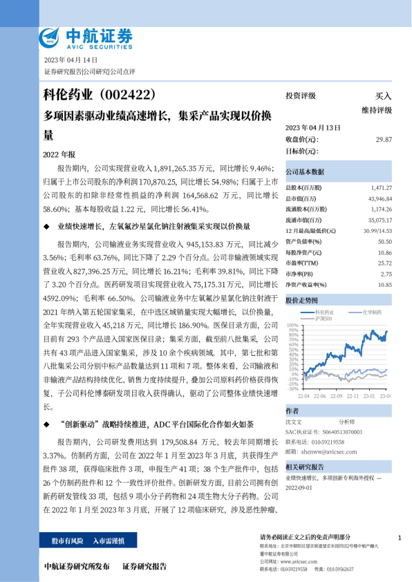 科伦药业(002422)