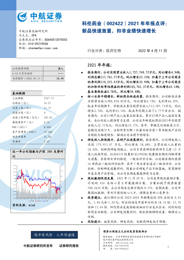 科伦药业2021年年报显示,公司业绩稳健增长,新批药品快速放量,研发投入持续提升,股权激励计划增强了公司竞争力。