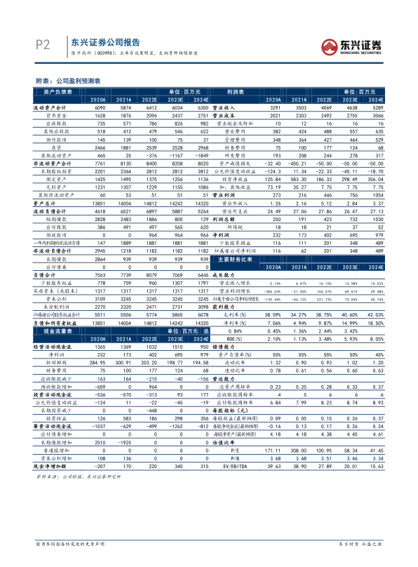 玉米制种成本有所上涨,水稻去库存效果明显。 公司 21 年收入端增长主要来源于综合农业服务及其他种子板块,同比增长 62.42%至 6.32 亿元。从公司主营业务来看, 21 年公司玉米种子实现销售收入 10.15 亿元, yoy+2.74%,水稻种子实现销售收入 13.04 亿元, yoy-6.19%。受制种成本上行影响, 21年公司玉米种子毛利率下滑 8.44pcts 至 31.21%,水稻种子毛利率小幅下滑2.46pcts 至 29.38%。 公司逐步整合水稻业务, 成立了亚华水稻事业部以强化内部协同, 同时持续改善自身库存状况,集中展开了水稻小品种清理去库存工作,取得明显效果。 21 年公司共计提存货跌价准备 4.44 亿元,其中水稻种子计提 3.27 亿元。 截至 21 年末公司水稻种子库存同比下降 32.74%,整体库销比 81.68%,降低 40.35pcts。公司逐步提升内部管理协同能力,清理库存轻装上阵, 有利于公司提升自身经营效率, 进一步增强行业竞争力。
