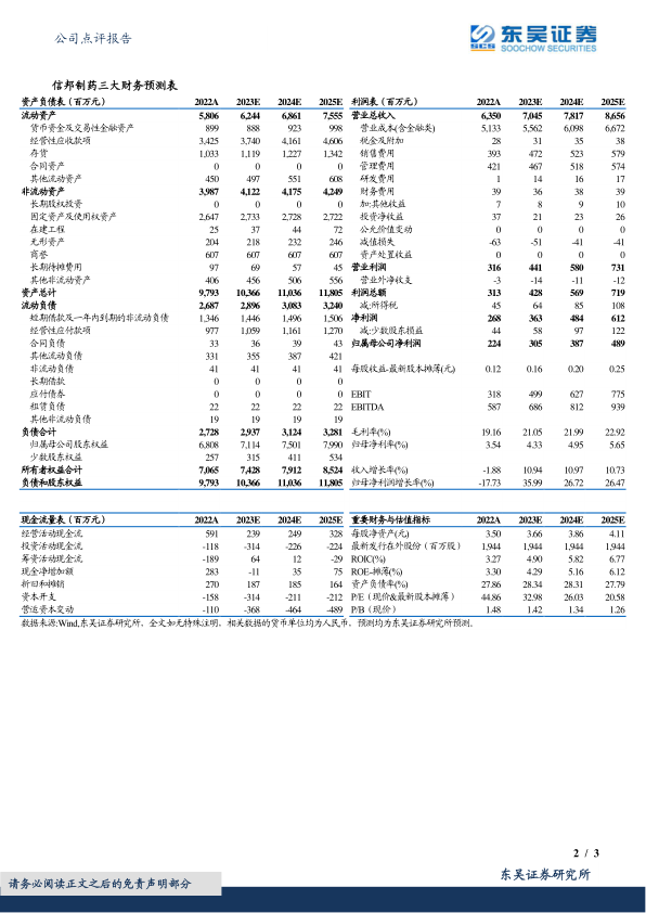 信邦制药2022年业绩受疫情及股权激励费用影响短期承压,但剔除一次性费用后,核心利润仍保持增长。医疗服务板块在疫情后有望逐步修复并提升盈利能力,而医药制造板块,特别是中药饮片业务,在产能扩充的支撑下展现出强劲的增长势头。医药流通板块通过高覆盖率和渠道拓展保持稳定。尽管短期盈利预测有所下调,但公司在各业务板块的战略布局和增长潜力,尤其是在中药饮片领域的显著进展,为其疫后业绩修复和长期发展提供了坚实基础。分析师维持“买入”评级,但提示需关注医院盈利恢复、政策变化及医疗事故等风险。
