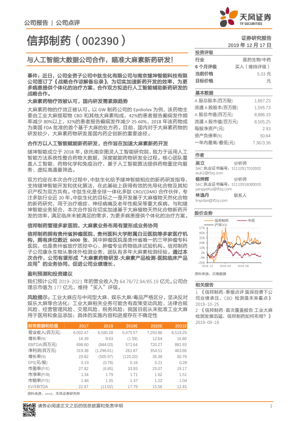 本报告分析了信邦制药与南京燧坤智能的战略合作,认为该合作有望借助人工智能技术加速大麻素新药的研发,并与公司现有的医疗资源形成协同效应。报告维持对信邦制药的“买入”评级,但同时也提示了工业大麻相关业务的政策、合规和实施风险。