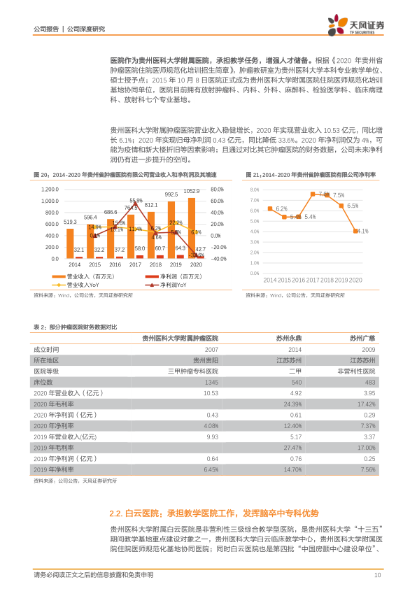 考虑疫情影响及公司年报数据更新,我们调整公司2021-2023年预测营业收入至69.67/82.26/96.40亿元(前次2021年为85.19亿元),预计归母净利润为2.78/3.40/4.27亿元(前次2021年为4.64亿元)。就2021年而言,医疗服务预测营业收入为22.42亿元,同类公司PS为14倍,考虑到公司整体医疗服务仍处于爬升期,给予公司10倍PS,对应市值为224亿元;医药流通业务预测归母净利润1.64亿元,同类公司PE为14倍,考虑到公司在贵州省内的领先规模优势以及商业与医疗服务板块间的协同效应,给予公司25倍,对应市值41亿元;医药制造业务预测归母净利润0.52亿元,同类公司20倍,给予公司20倍,对应市值10亿元;对应总市值为276亿元,不考虑增发影响,目标股价为16.53元,维持“买入”评级。