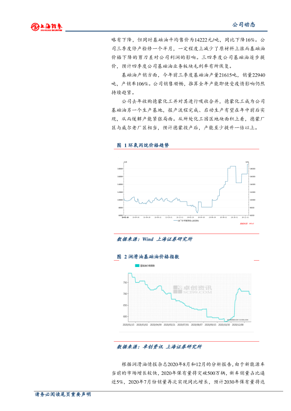 基础油价格指数2020Q4涨25%德蒙厂区有望21H1启动生产