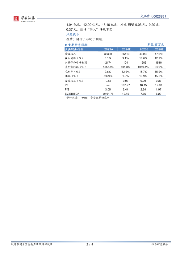 我们预计2024-2026年公司实现营业收入364.13亿元、424.59亿元、479.20亿元,同比增长9.1%、16.6%、12.9%,对应归母净利润1.04亿元、12.09亿元、15.10亿元,对应EPS0.03元、0.29元、0.37元,维持“买入”评级不变。