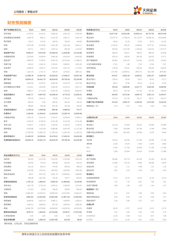 不 考 虑 转 基 因 业 务 的 增 量 , 我 们 预 计 2021-2023 年 公 司 实 现 营 业 收 入328.54/407.38/486.74 亿 , 同 增 44.01%/24.00%/19.48% , 实 现 归 母 净 利 润23.19/24.71/26.10 亿,同增 18.55%/6.57%/5.64%。考虑到公司在转基因育种领域的领先优势及长期空间,维持“买入”评级。